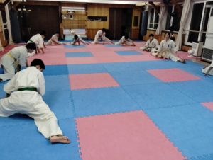 準備体操から幸護先輩が指導します。 足首を回します。 先輩が付いて指導します。 伸脚。 背筋を伸ばします。 手首の運動。 正拳中段突き。 裏拳左右打ち。 騎馬立ち、肘落とし。 前蹴り。 先輩の熱意が伝わっているようです。 […]