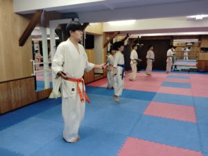 縄跳びから始めます。 跳躍力はあらゆるスポーツの基礎となるものです。 玖苑先輩が準備体操と基本稽古を指導します。 足首を回します。片足でふらつかずに立てるようにします。 基本稽古、正拳中段突き、上段突き、下段突きと続きま […]